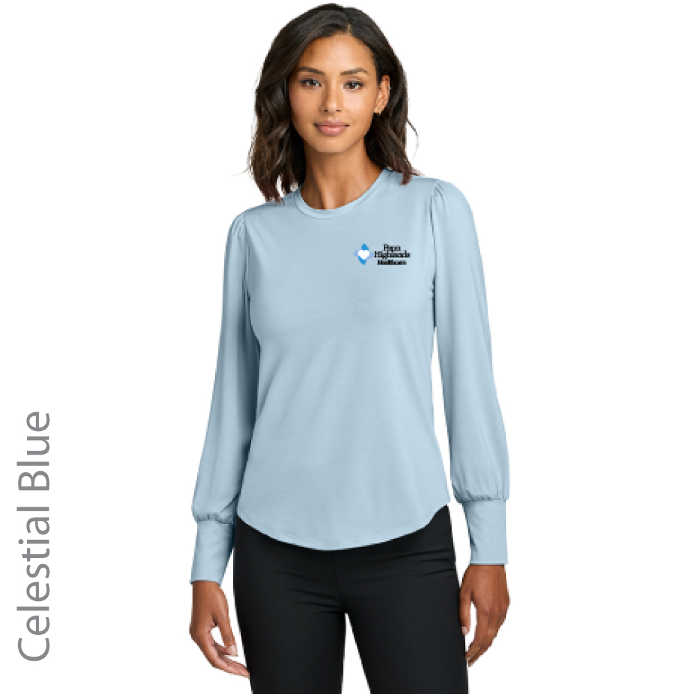 Delicately puffed blouson sleeves and a jewel neckline help create a feminine silhouette in this top that leans into a fashionable feel. Designed to be worn tucked or untucked, this flattering style is perfectly at ease in dressy or casual occasions. (Decorated with the PHH logo)